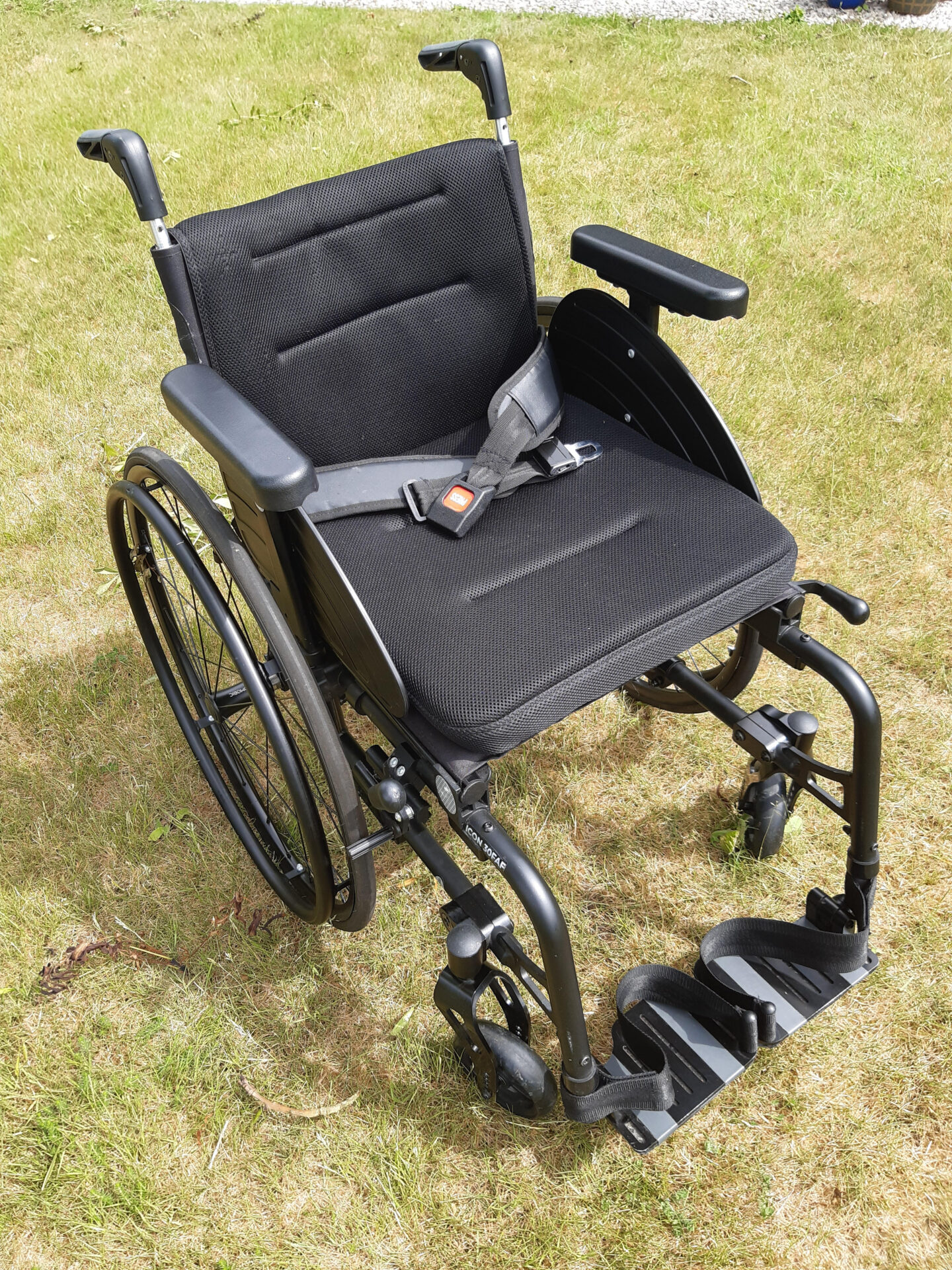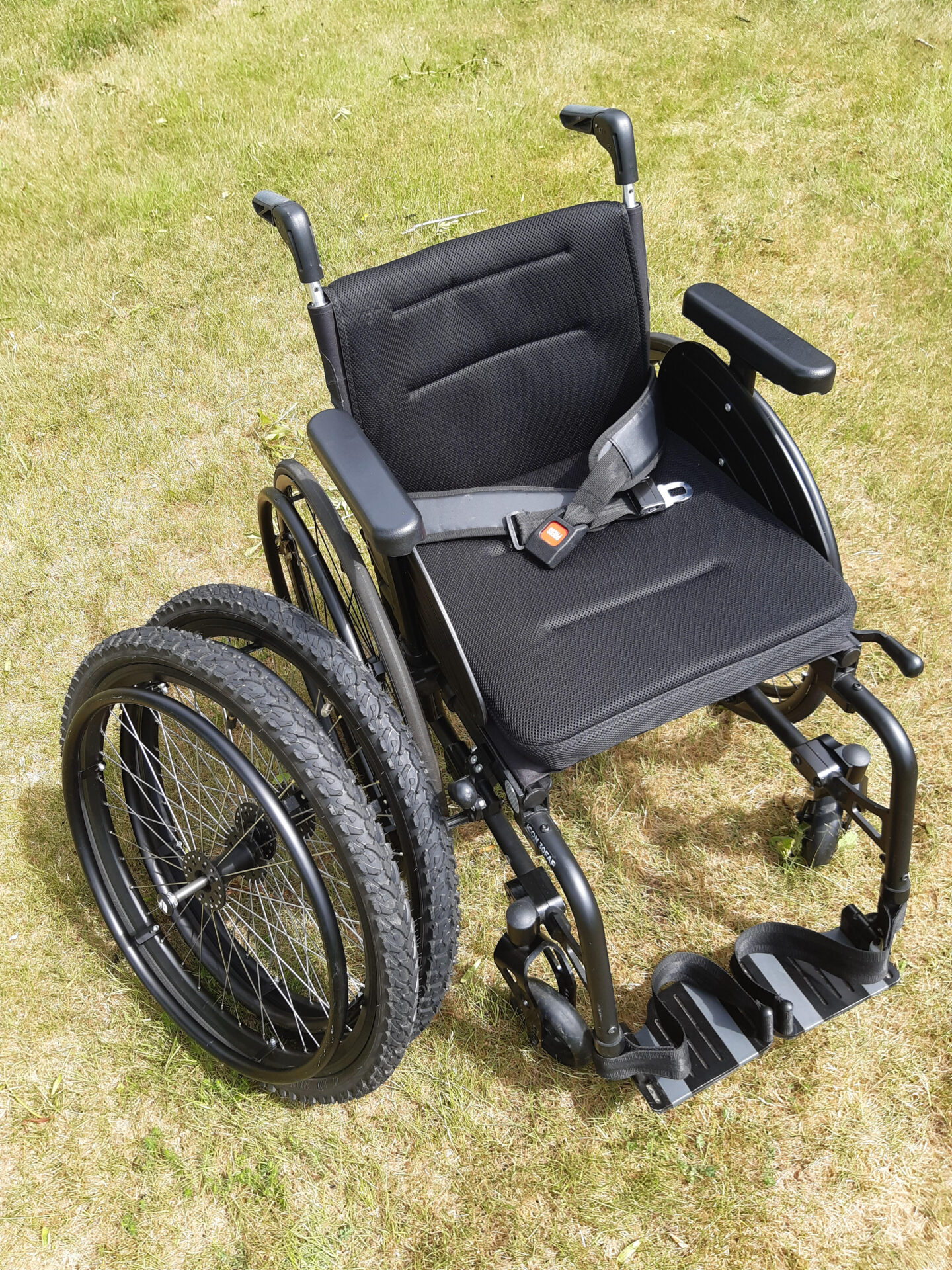 It is the ideal combination of attachments, including the Rehasense TrackWheel, which I am also selling. This effectively allows the chair to go ‘off-road’ or be pushed quickly at a parkrun, for example. I would like to sell it at the same time, if possible. I have user manuals for both items.