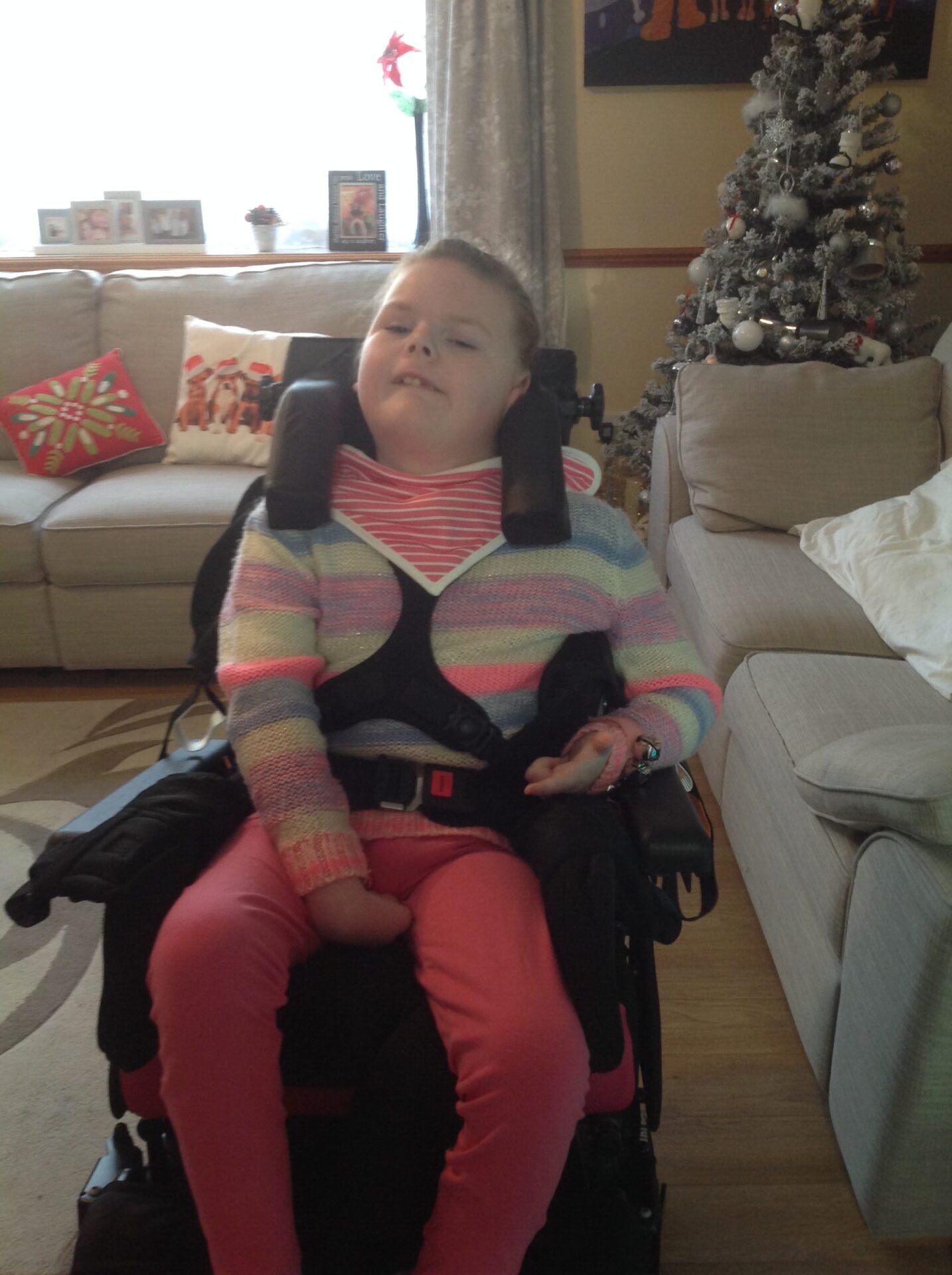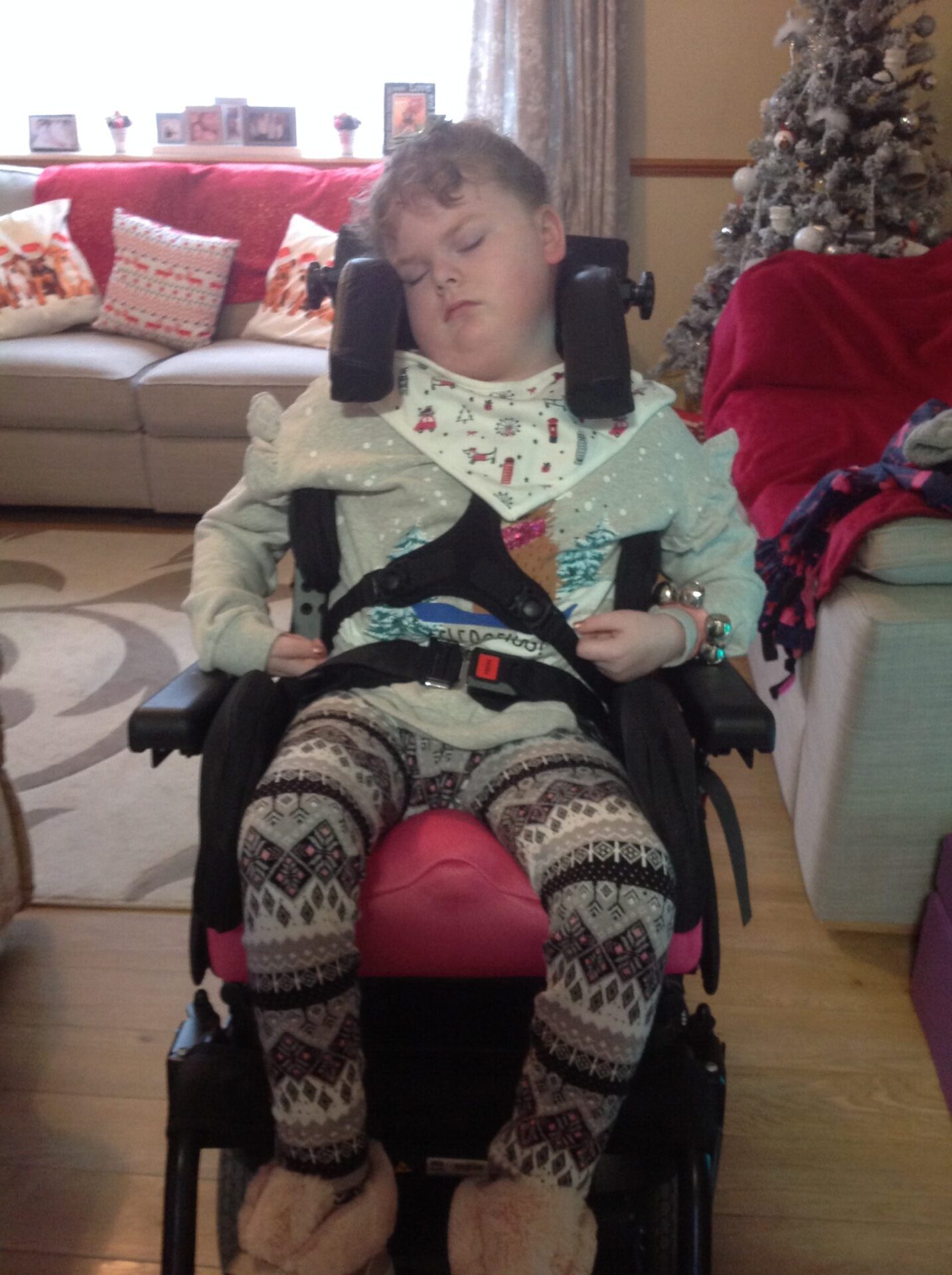 This is my daughter Suzanne, who has a rare condition called Lissencephaly and needs full support in her wheelchair.